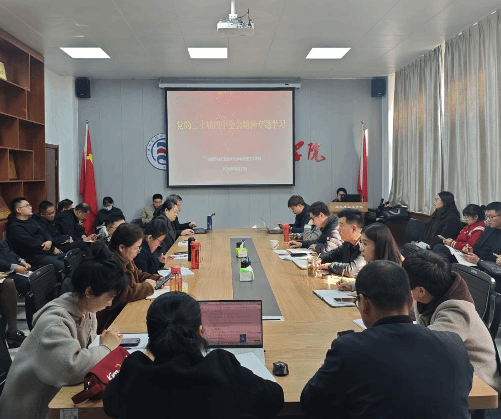 10月27日,马克思主义学院召开党的二十届四中全会精神专题学习会。会议由学院党总支书记张中世主持,院长张伟出席,全体党员参加。